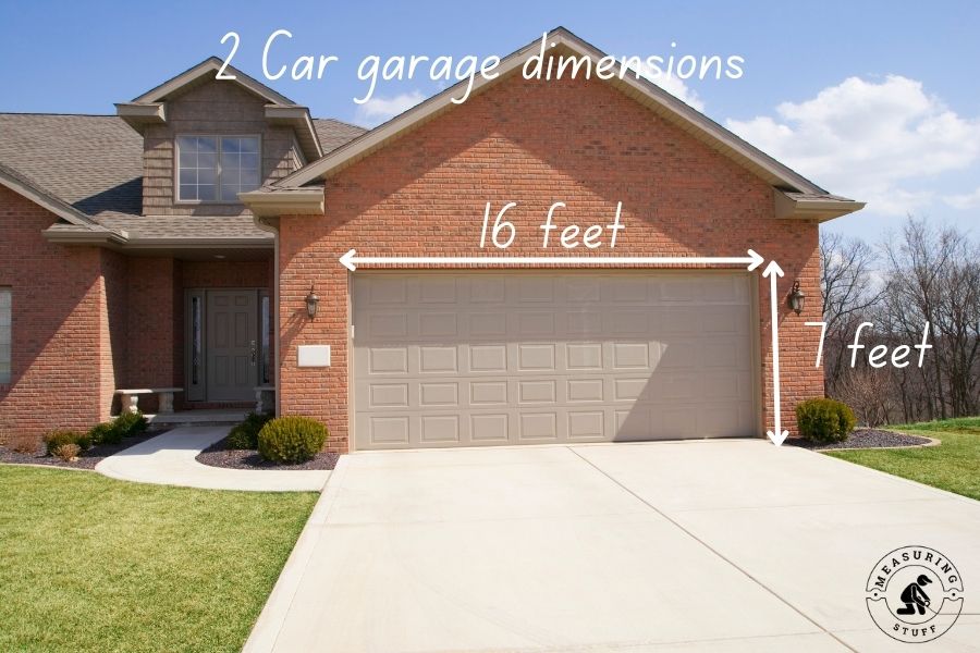 On average, a standard two-car garage has a door that’s about 16 feet wide and 7 feet tall.