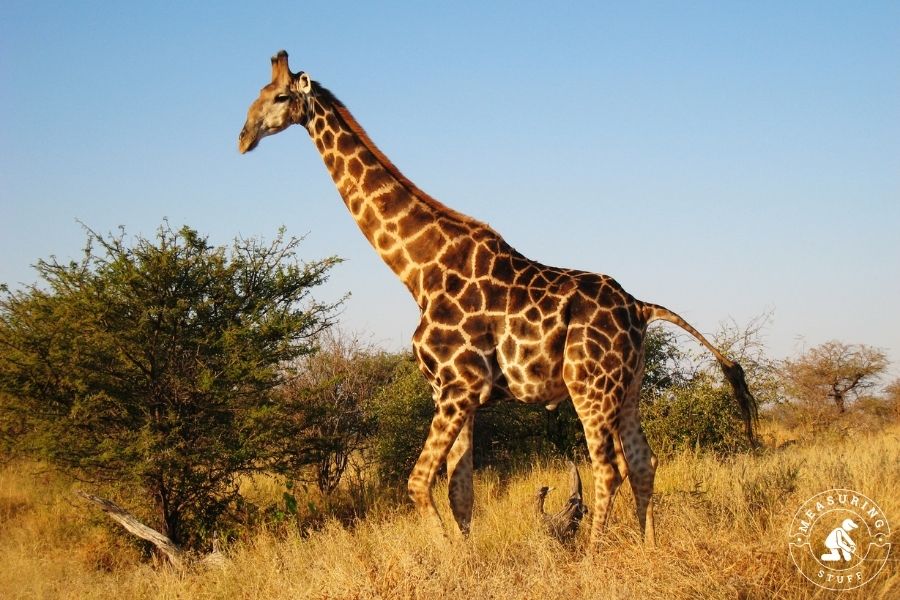 A full-grown giraffe can reach up to 18 feet tall with its neck equalling ⅓ of that size.