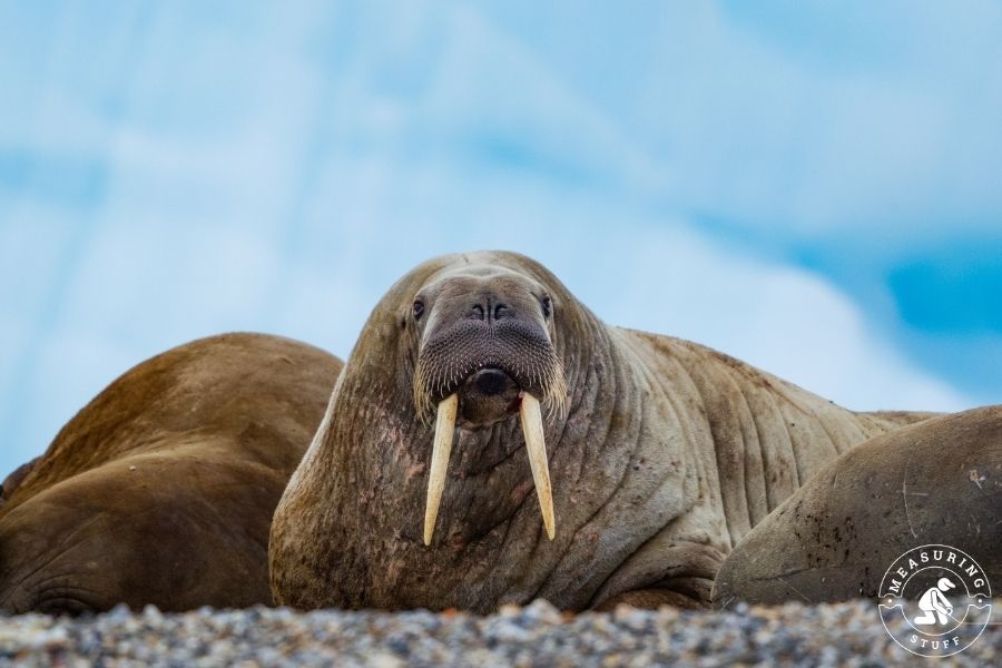 The Pacific Walrus is very large and like other mammals, the males weigh more than the females.