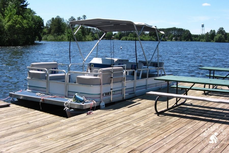 On average a pontoon boat will weigh around 75 – 100 pounds for every foot of length.