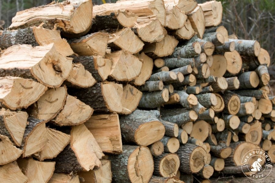 A cord of wood is measured at 128 cubic feet or 8 feet long x 4 feet wide x 4 feet tall.