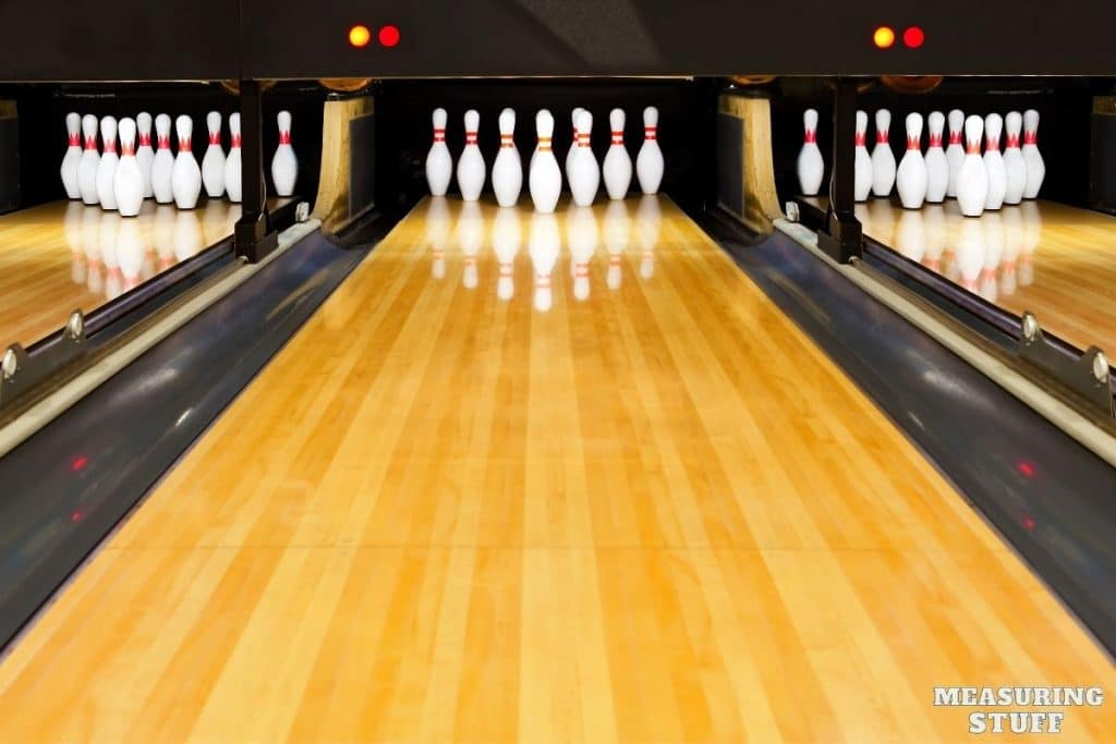 20 bowling pins placed one on top of each other, would equal 300 inches which is exactly 25 feet.