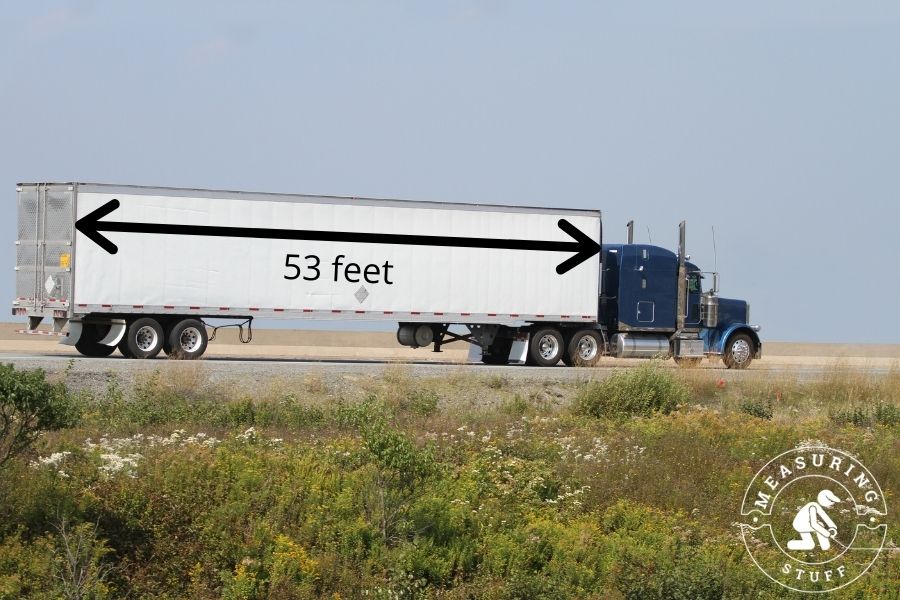 Most trailers that are hauled by semi trucks will be 53 feet long.