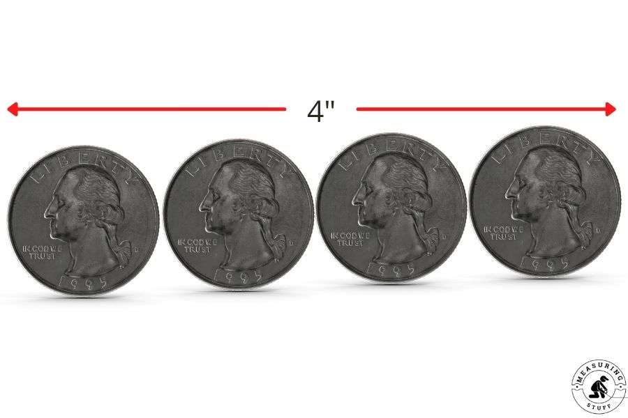 Pennies are 3/4 of an inch in diameter, so using them is a bit less accurate, but they can be handy for shorter lengths.