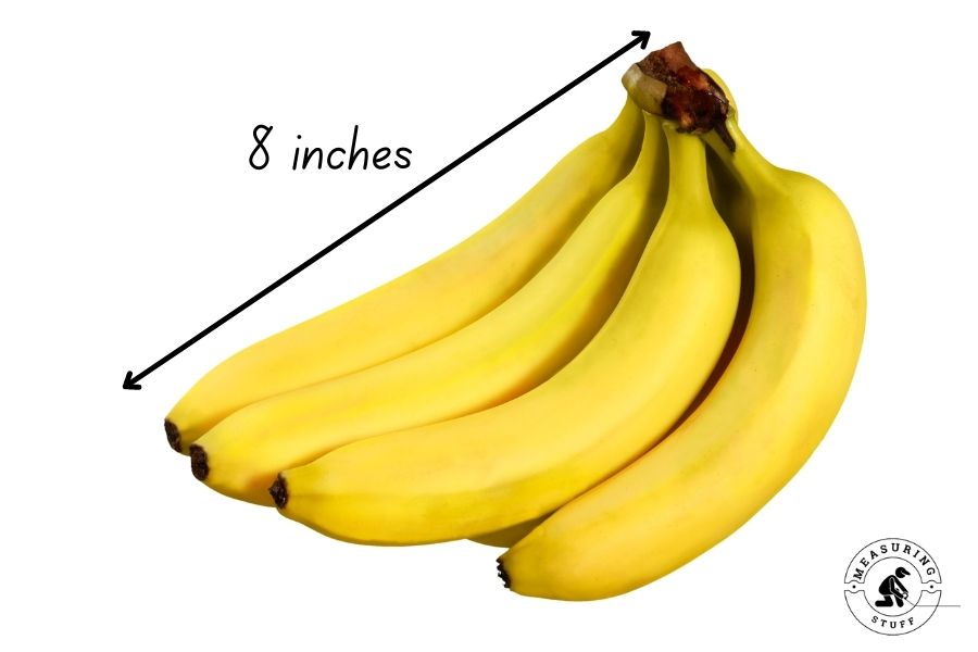 Not all bananas are the same size and they will vary in length. But on average, a full-sized banana will be 8 inches long.