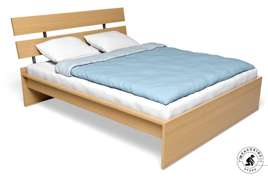 This gives us square footage of about 33.35. A king mattress measures 80 inches by 76 inches or 6.67 feet by 6.33 feet, which is equal to the square footage of about 42.22.