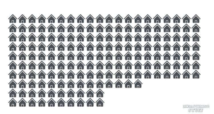 A decent-sized family home will be around 2500 square feet in size. This is equal to about 0.057 acres. If you are looking to visualize 10 acres in area, picture 174 of these homes together and it will be close to 10 acres.