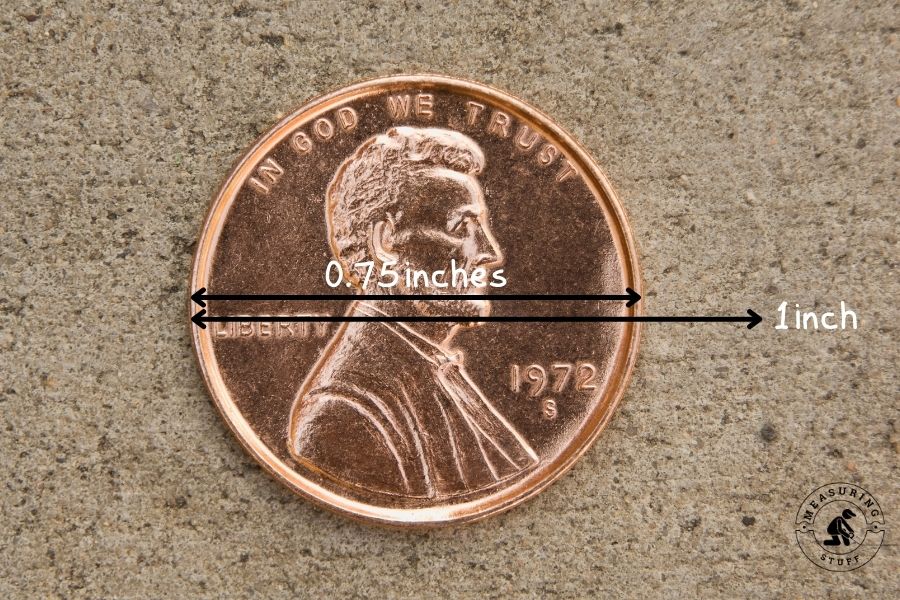 The USA penny coin is 0.75 inches in diameter which is ¾ the size of an inch.