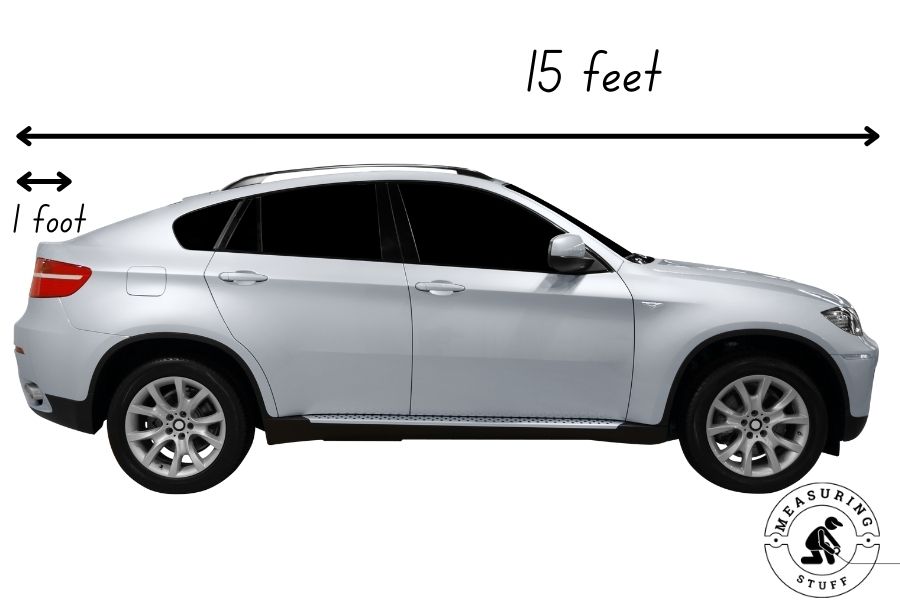 Most mid-size sedans are close to 15 feet long. If you could divide this car into 15 equal parts, each part would equal 12 inches.
