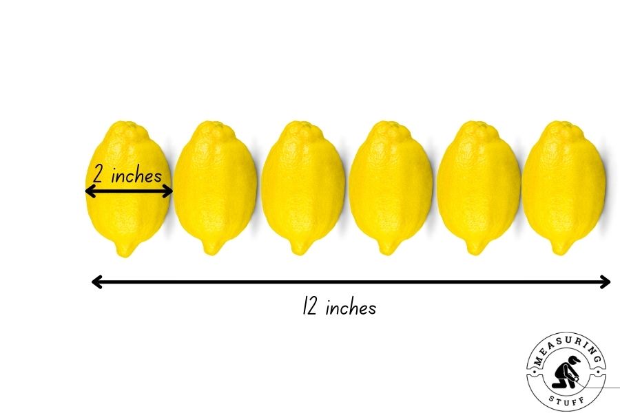 If you have 6 lemons placed together in a row, they will equal close to 12 inches long.