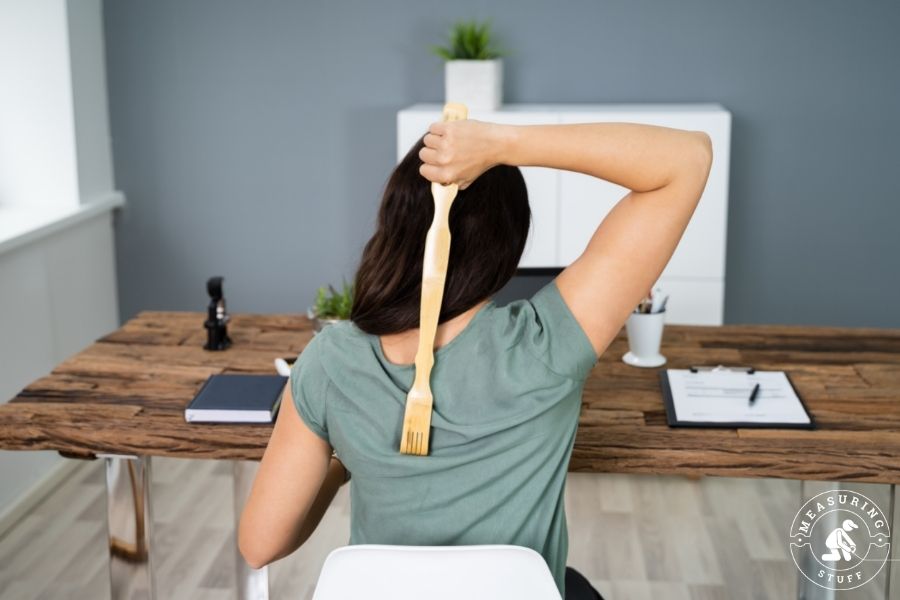 These are a tool made specifically for reaching areas of your back that you can’t reach. Many back scratchers are made out of plastic or bamboo and will have claws or tips on the end to help relieve an itch.