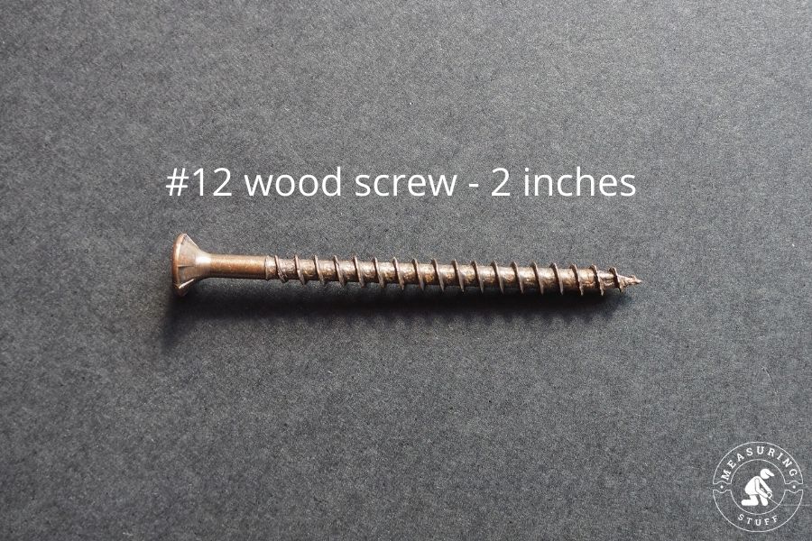 A variety of wood screw sizes are available, with the most common size being the #12 wood screw which is 2 inches long. Using this screw is a great reference for length and if you had 9 of them placed together, they would equal 18 inches long.