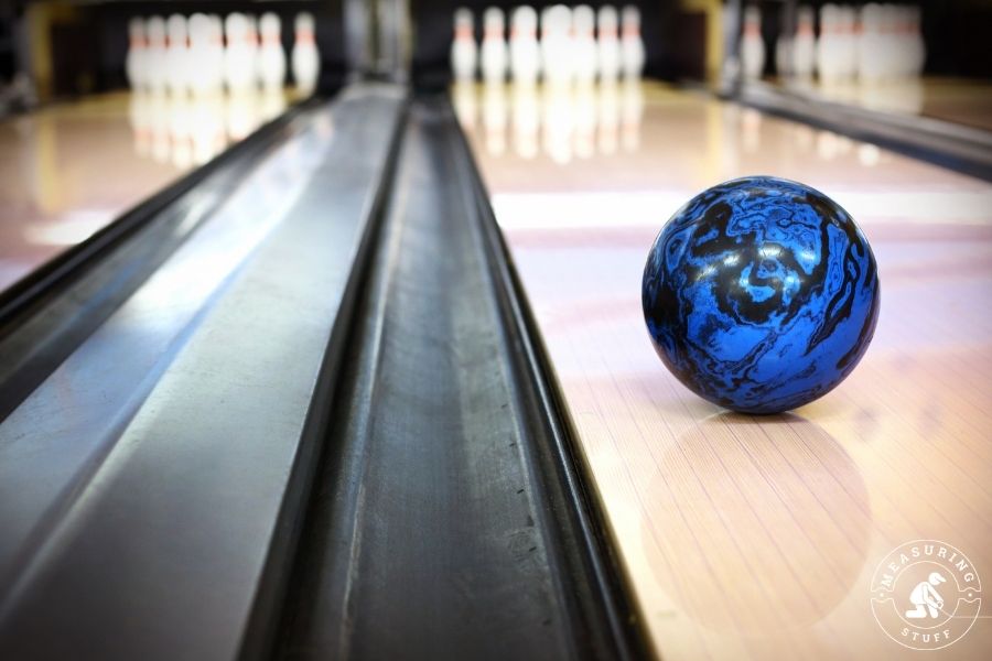 The common bowling ball used in 10 pin bowling leagues has a diameter of 8.592 inches. So if you measure the distance through the center of the ball touching both sides, it would equal 8.592 inches. If you can imagine 2 bowling balls side by side, they will give you an idea of how long 18 inches is.