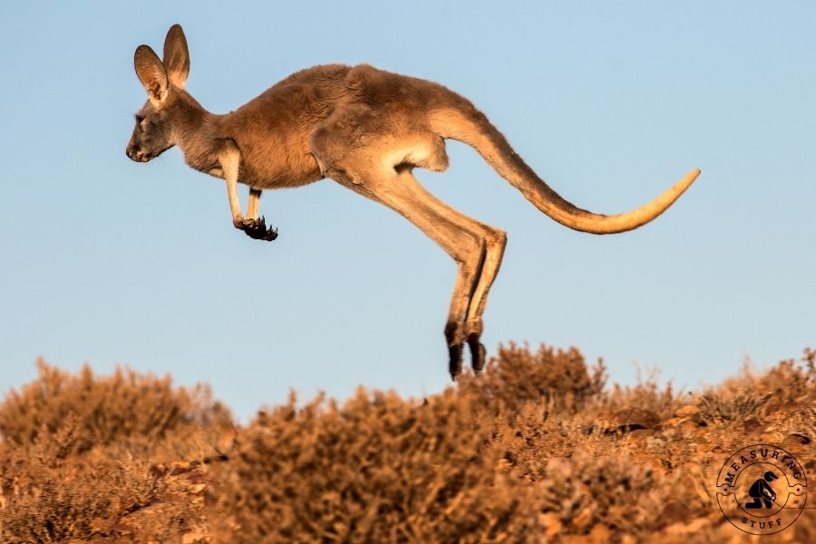 The Red Kangaroo has a body length of 1 to 1.4 meters in length with males being slightly larger than females.