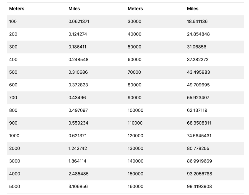 If you don’t feel like doing the math, use the meters into miles conversion calculator below.
