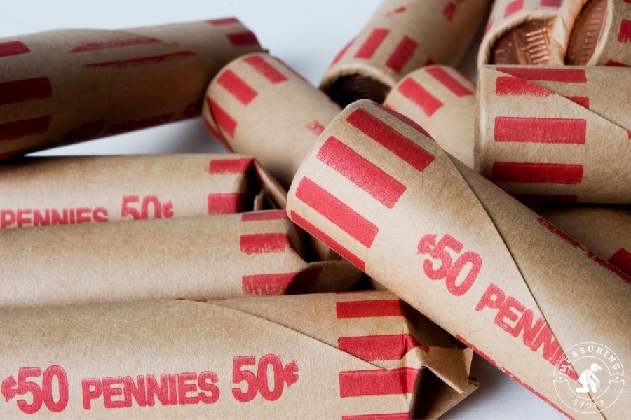 In this example, let’s use the USA penny. There are 50 pennies in a standard roll of USA pennies which equals 50 cents.