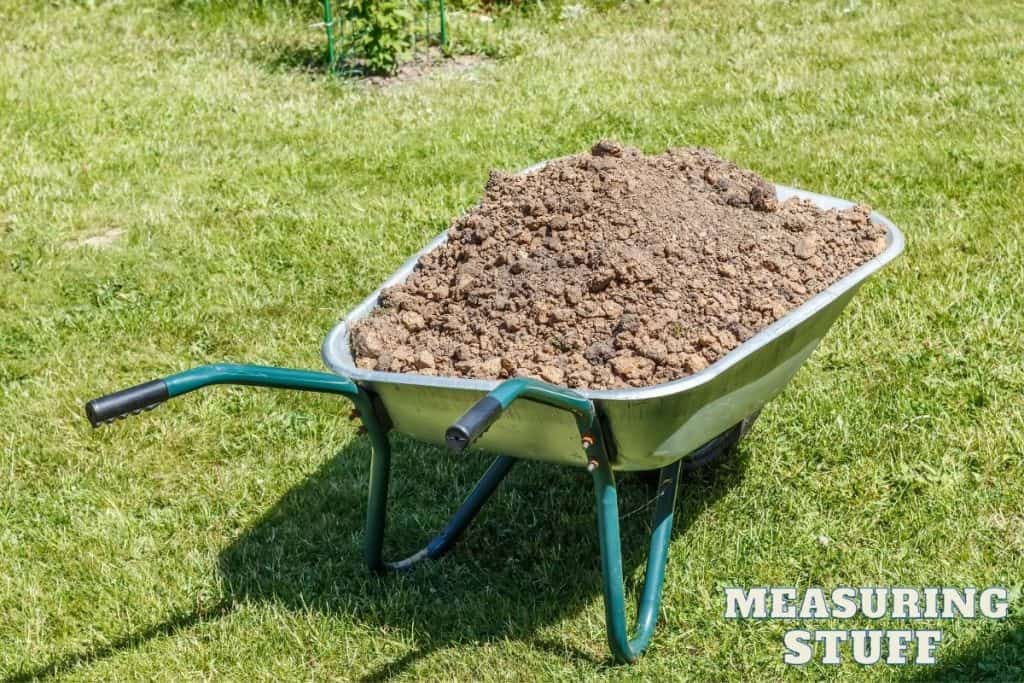 The amount of soil your wheelbarrow will hold depends on its size. Either a 2, 3, or 6 cubic foot wheelbarrow can be used.