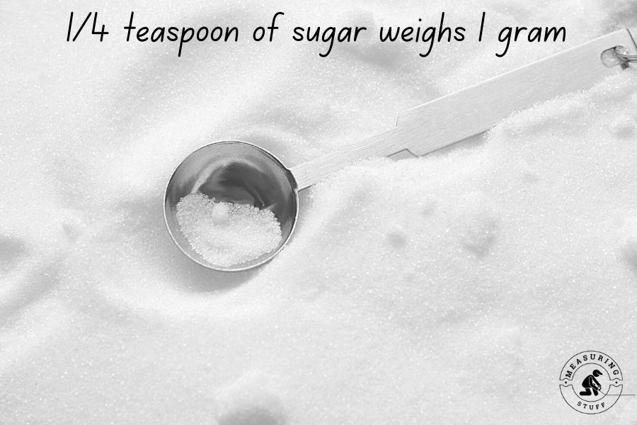 One-quarter of a teaspoon of regular granulated sugar weighs about 1 gram.