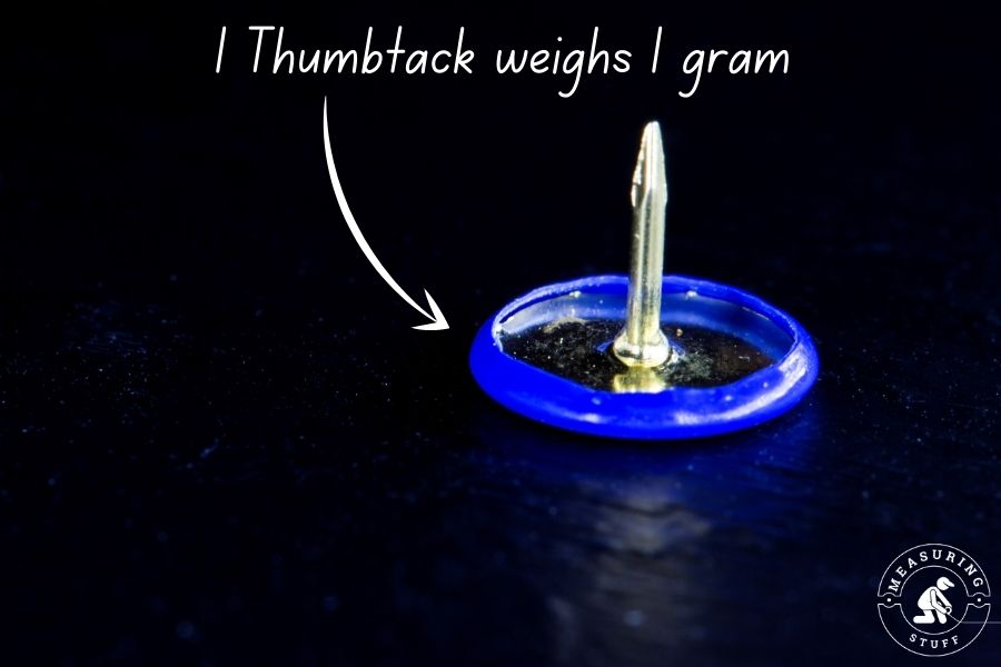 The material the tack is made of can also cause differences in weight. However, on average, holding or imagining the weight of a thumbtack can help you estimate what 1 gram feels like with relative accuracy.