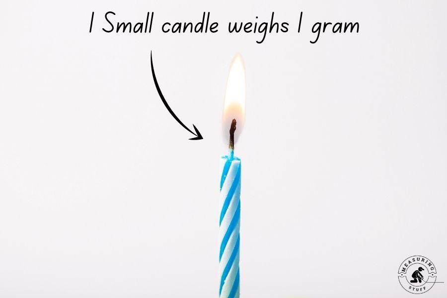 However, the small, spiraled candles, commonly used on birthday cakes, each weigh about 1 gram before they’ve been used.