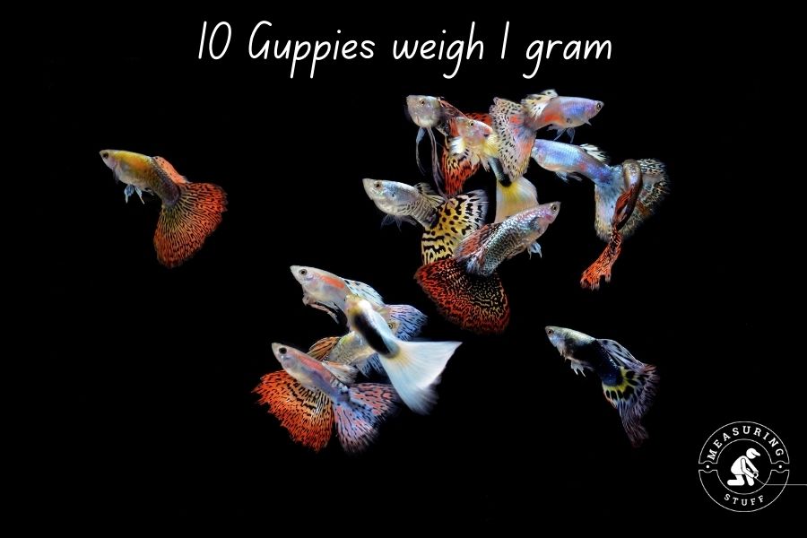 This means that 10 guppies, which is what you’ll often see in an aquarium, weigh right around 1 gram.