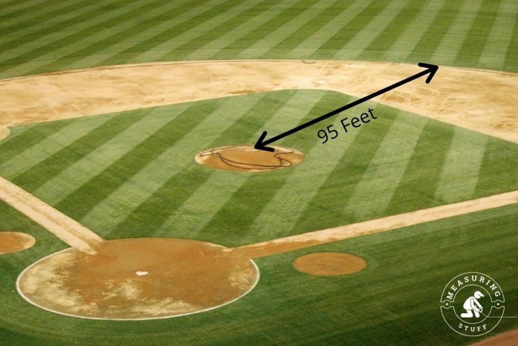 However, the distance from the pitcher’s mound to the edge of the outfield grass, just beyond second base, is 95 feet. Visualizing this distance can help you approximate what 100 feet is.