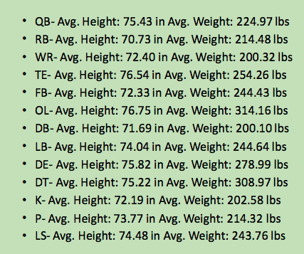 Chart showing average weight of NFL football players
