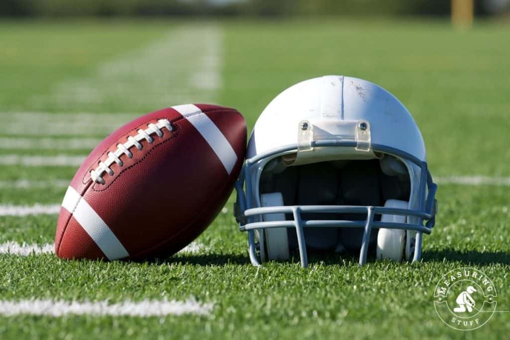 The average weight of a football helmet is between 4 – 6 pounds.