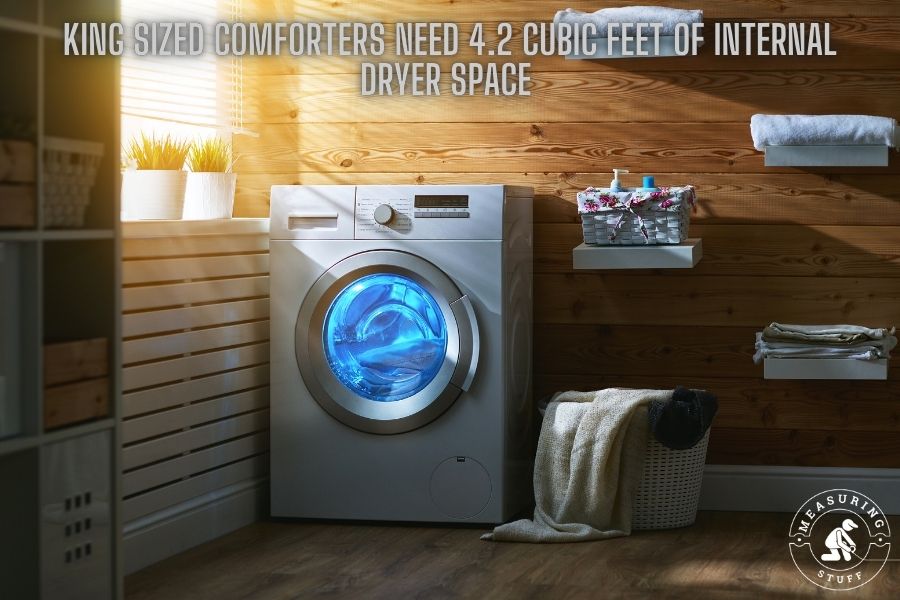 An internal space of 4.2 cubic feet is generally considered to be the minimum size for a dryer that can fit a king comforter.
