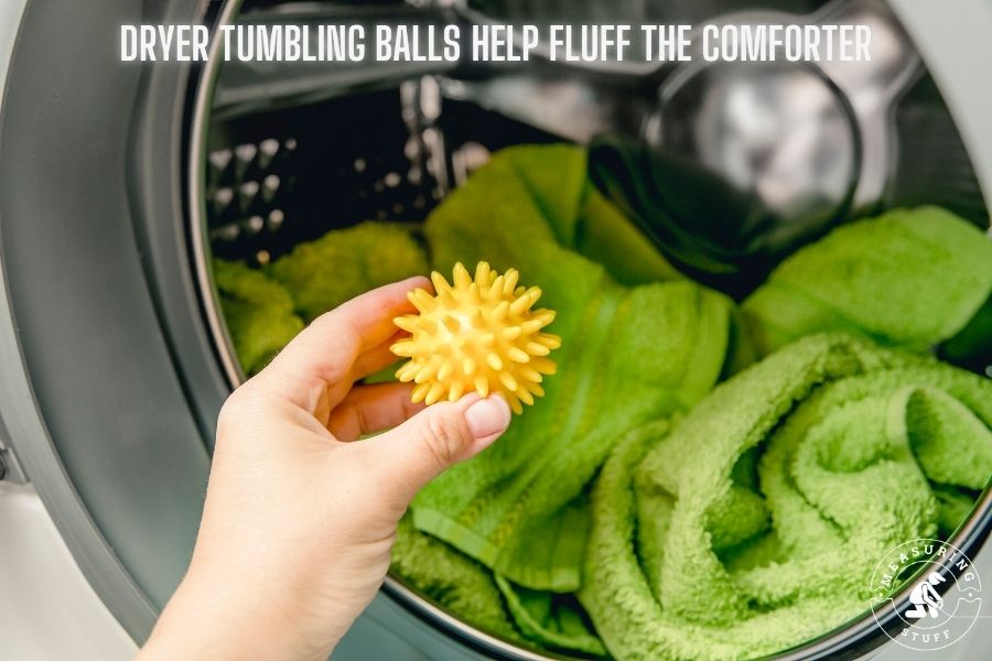 As the balls move around in the rotating dryer, they help to fluff the comforter.