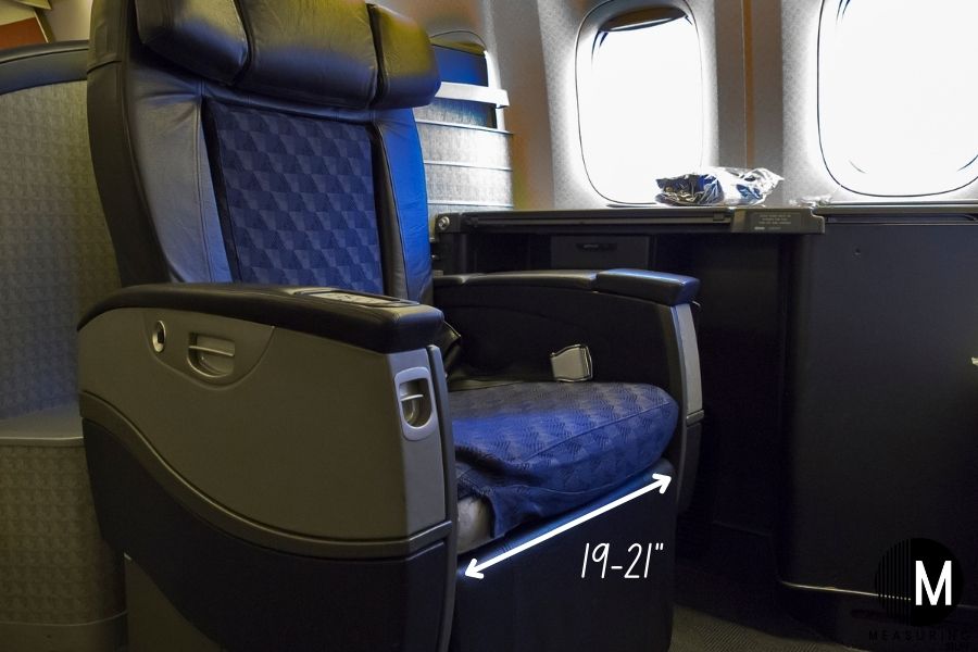 Seats in first class are usually a bit roomier, often measuring between 19 and 21 inches.